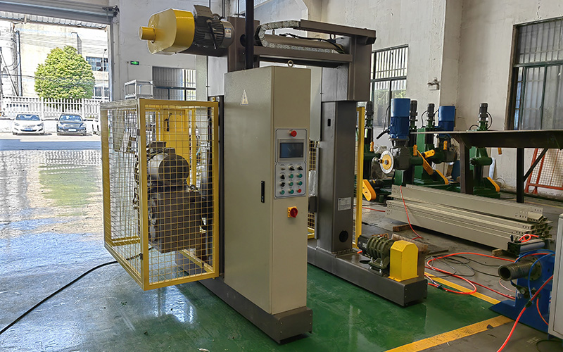 The Take-up is the AC motor drive the gearbox to drive bobbin, and the gearbox is infinitely variable; Siemens 200 PLC+ imported Siemens governor is used to control the motor operation. The traverse pitch and bobbin information can be input in the control panel,PLC control with coil diameter calculation function can automatically control the tension and reverse direction. The motor drives the traverse to reduce the gear box and the guide wheel, to control the pitch of the traverse, and the gear box is directly connected to the traverse shaft;