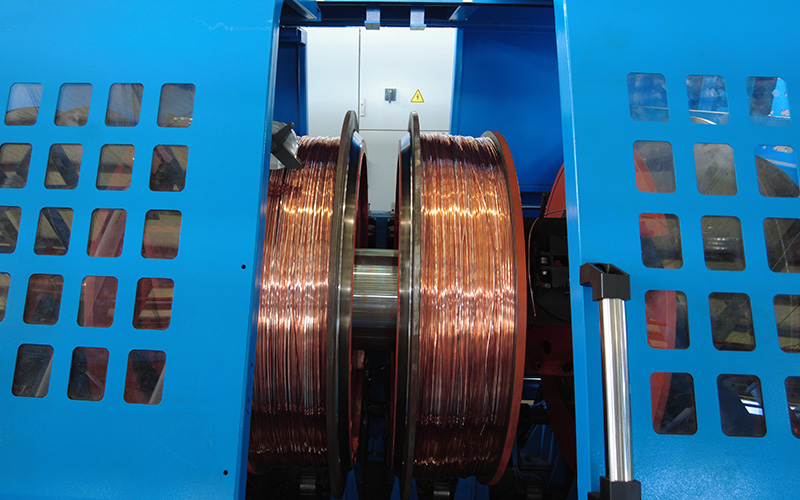 3. One wire per bobbin, plus simple and stable tension control, and the maximum operating line speed reaches 3 times that of the frame rigid stranding line;